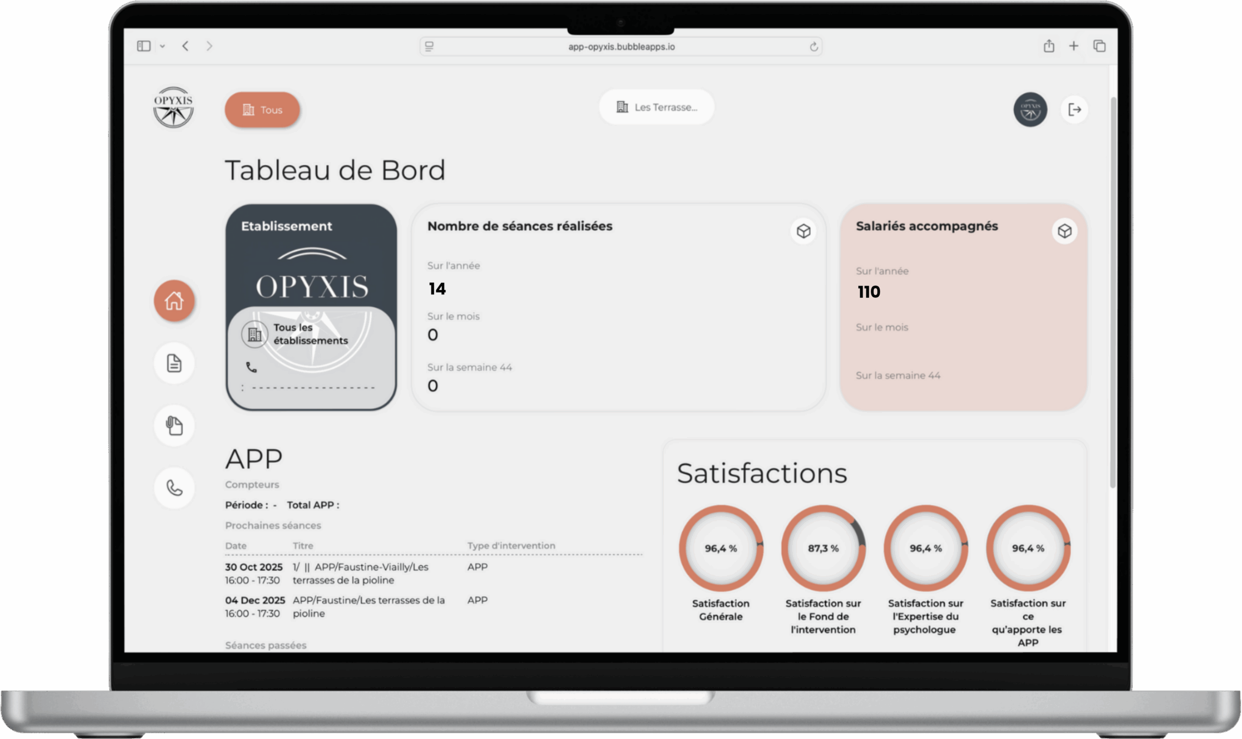- Un suivi complet de KPI relevant de la satisfactions ainsi que de la participation de vos équipes aux analyses de pratiques professionnelles.